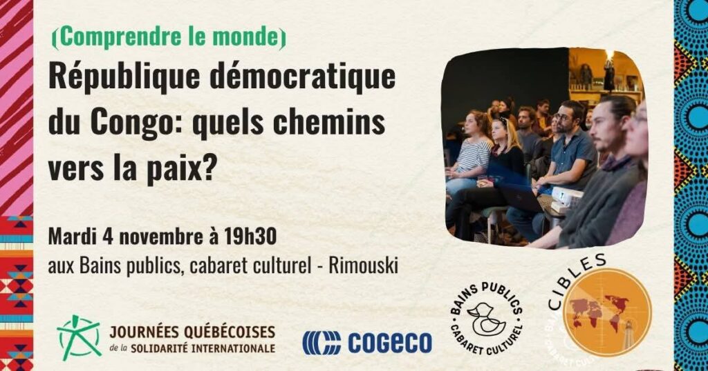 Rimouski, Québec – Le mardi 4 novembre, le cœur du Bas-Saint-Laurent battra au rythme des enjeux de la République Démocratique du Congo (RDC). Dans le cadre des Journées québécoises de la solidarité internationale, la ville de Rimouski accueille une conférence essentielle : « République démocratique du Congo : quels chemins vers la paix ? »