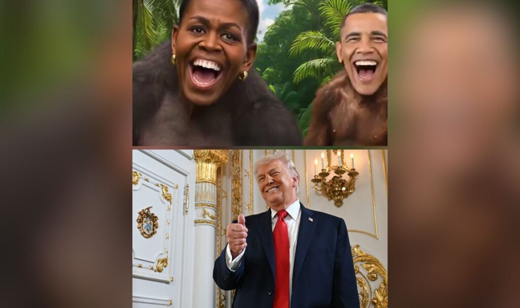 C’est une séquence d’une minute et deux secondes qui a pétrifié Washington en plein « Mois de l’histoire des Noirs » (Black History Month). Jeudi soir, sur son compte Truth Social, le 47e président des États-Unis a partagé une vidéo reprenant la litanie désormais classique des théories du complot sur l’élection de 2020. Mais c’est le final qui a provoqué l’hallucination : durant quelques secondes, sur fond sonore de The Lion Sleeps Tonight, les visages de Barack et Michelle Obama apparaissent, détournés par intelligence artificielle, sur des corps de primates gambadant dans la jungle.
