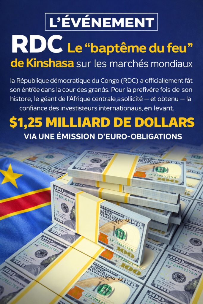 C’est un séisme financier dont l’onde de choc dépasse les frontières du fleuve Congo. Ce jeudi 9 avril 2026, la République démocratique du Congo (RDC) a officiellement fait son entrée dans la cour des grands. Pour la première fois de son histoire, le géant de l’Afrique centrale a sollicité — et obtenu — la confiance des investisseurs internationaux en levant 1,25 milliard de dollars via une émission d’euro-obligations.