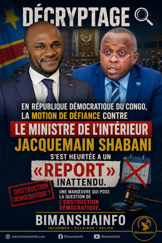 DÉCRYPTAGE. En République démocratique du Congo, la motion de défiance contre le ministre de l’Intérieur Jacquemain Shabani s’est heurtée à un « report » inattendu. Une manœuvre qui pose la question de l’obstruction démocratique.